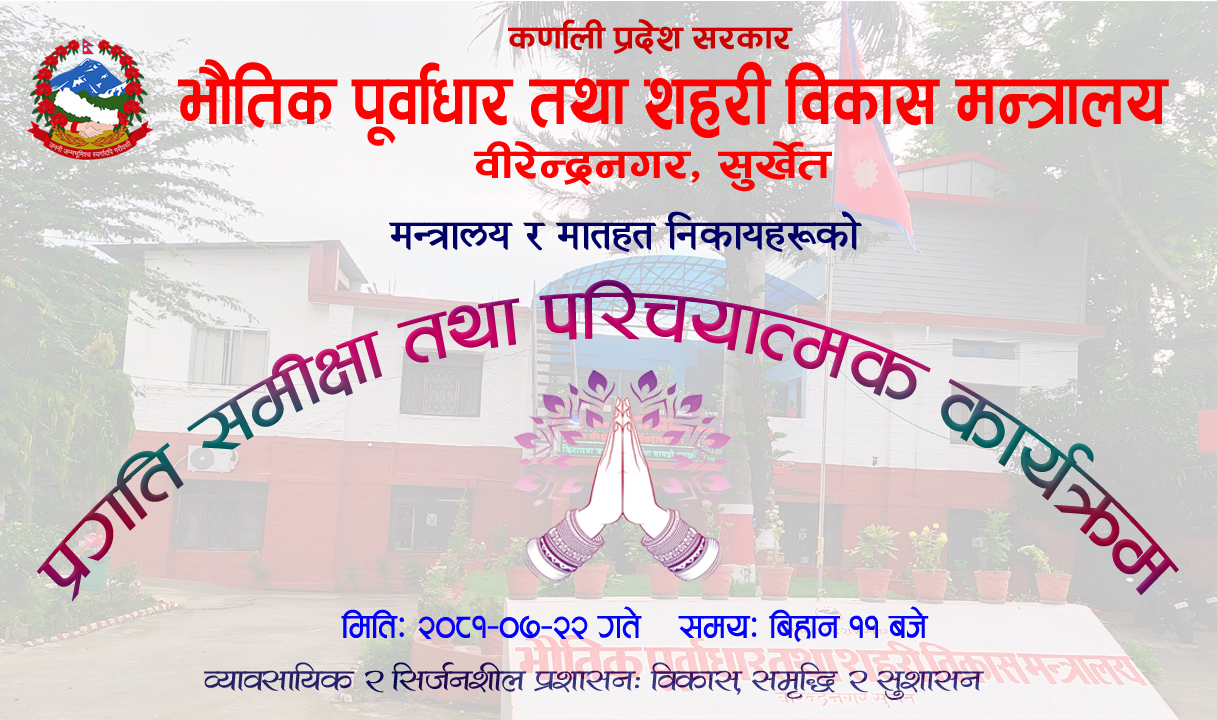 श्रीमान् सचिवज्युको उपस्थितिमा मन्त्रालय मातहत निकायका कार्यालय प्रमुखहरुसँग हालसम्मको प्रगति समीक्षा तथा परिचयात्मक कार्यक्रम सम्पन्न ।